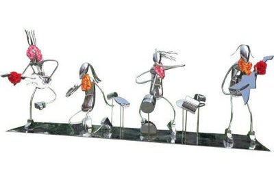 這款雕塑作品的設(shè)計靈感來源于西方文化,采用現(xiàn)代雕塑藝術(shù)的表現(xiàn)手法,以及玻璃鋼材質(zhì)和烤漆工藝的制作,使作品更加精致而有層次感。